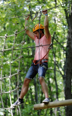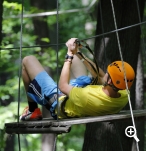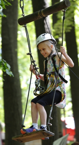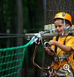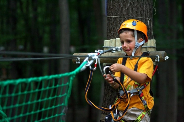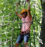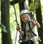 45 elemből 6 - 8 és 9 m magasan kialakított kötélpálya várja a legnagyobbakat a fák ágai között.