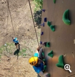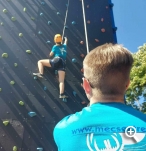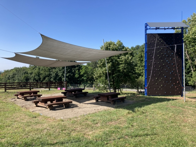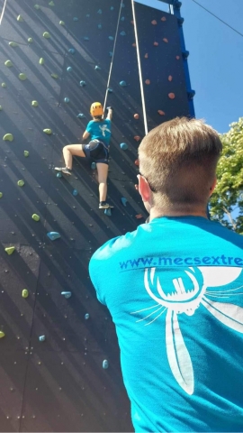 A parkban található mászófal nyolc méter magas és egymástól eltérő nehézségű útvonallal „kényezteti“ a kezdő és profi mászókat egyaránt! Így semmi akadálya, hogy kisebb nézeteltéréseket, „ki a legügyesebb“ tipusú baráti vitákat a Mecsextrém Parkban, mászással döntsetek el.